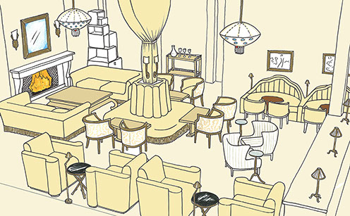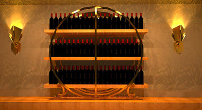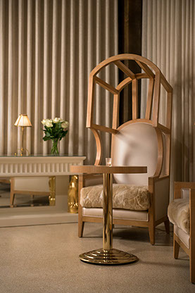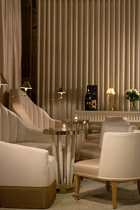 Many custom pieces were required to satisfy the client's vision for this opulent, champagne-themed space. I designed the pieces, along with sourcing specialty materials, fabrics, and lighting. I also fabricated custom art pieces.